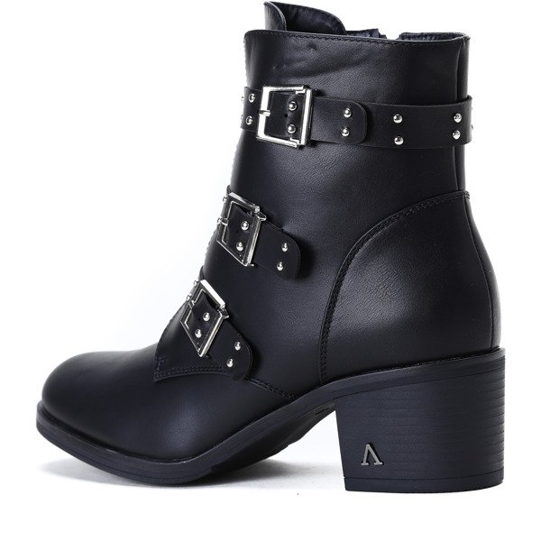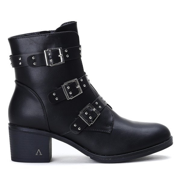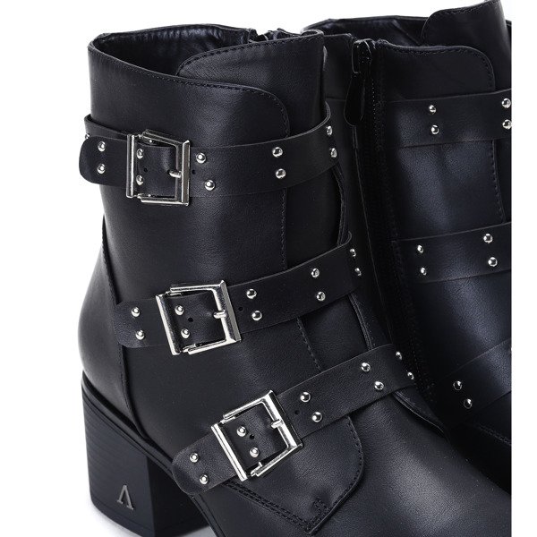 - Wyjątkowo wygodne botki wykonane ze skóry ekologicznej. W środku ocieplenie w formie futerka. Model zapinany na zamek. Cholewka zdobiona klamrami i dżetami. Idealnie się sprawdzą na co dzień!
