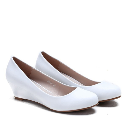 Białe czółenka na koturnie Rhea- Obuwie