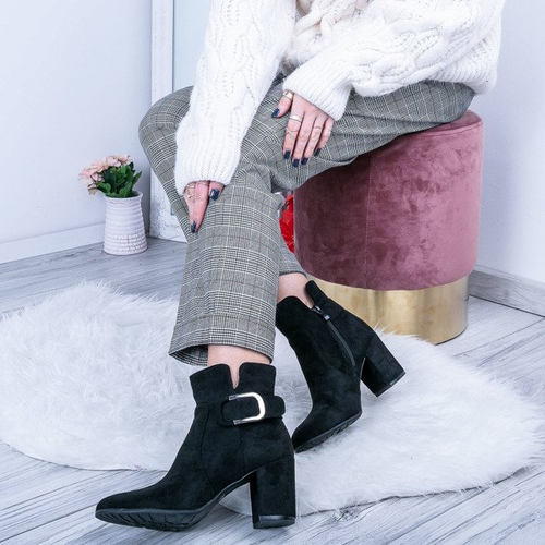 Czarne botki na wyższym słupku z ozdobną klamrą Polly - Obuwie