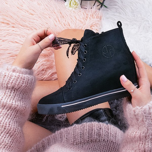 Czarne sneakersy wiązane koronkową wstążką Luna - Obuwie