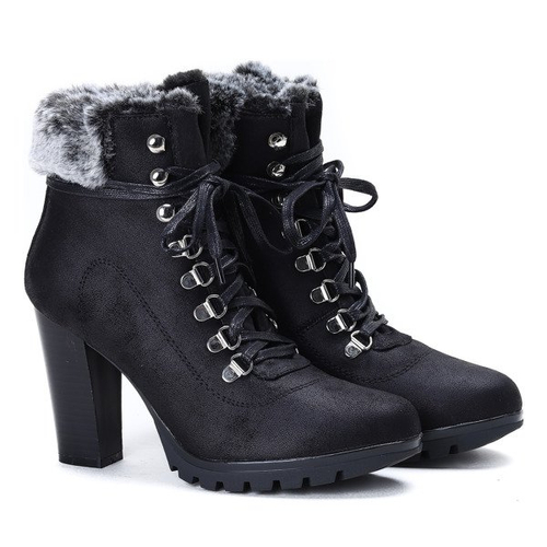 Czarne botki na słupku z futerkiem Rose - Obuwie