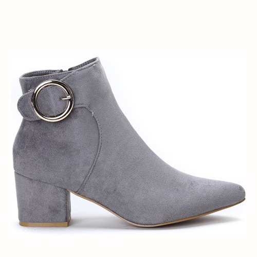 Szare botki na słupku z ozdobną klamrą Joelle- Obuwie