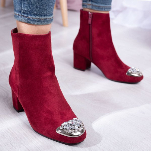 Bordové čižmy s ozdobnou špičkou na nízkom stĺpiku Hayley - Obuv