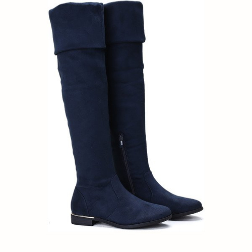 Granatowe kozaki z wywijaną cholewką Jasmine - Obuwie