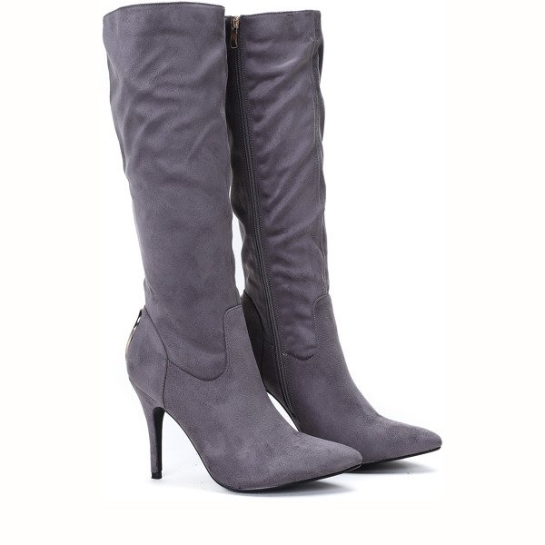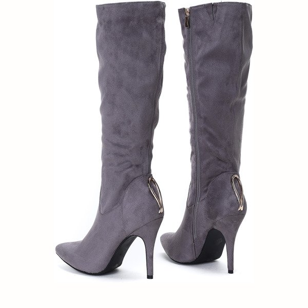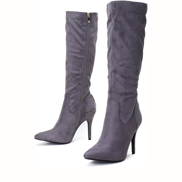 Szare kozaki na szpilce Cara - Obuwie