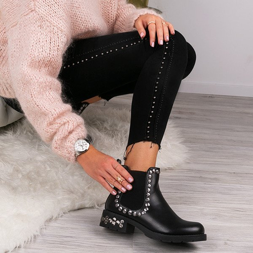 • Niesamowite sztyblety na niskiej platformie wykonane z ekologicznej eko-skóry. Obcas oraz część cholewki ozdobiona metalowymi nitami. W środku delikatne ocieplenie w formie futerka. Idealnie się sprawdzą do jesiennych stylizacji!