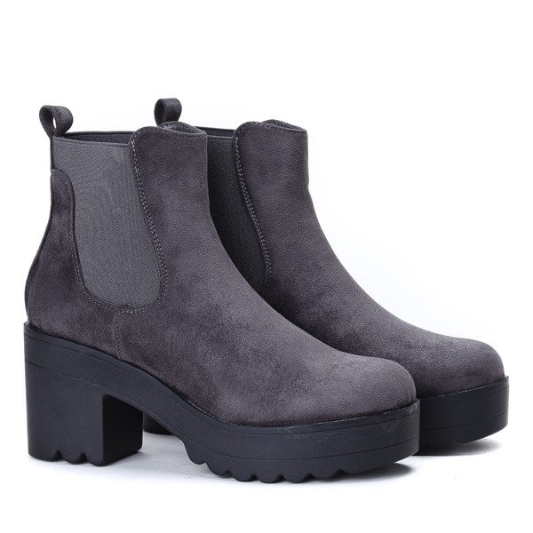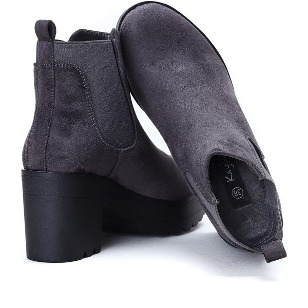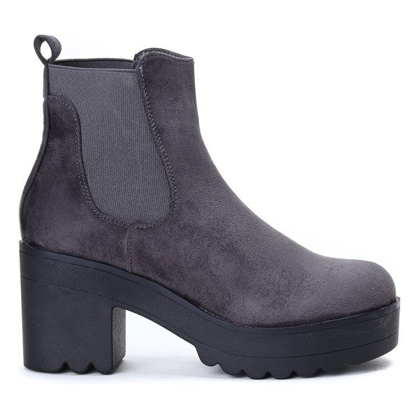 • Zjawiskowe botki na wysokiej platformie i słupku. Wykonane w całości z eko-zamszu. Cholewka ze wstawką z elastycznej gumy. Lekkie i bardzo zgrabne, delikatne ocieplenie. Uwaga: Obuwie o wąskiej budowie.