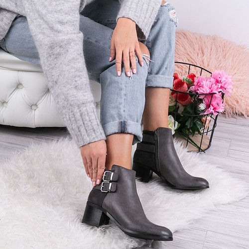 Botki na słupku z dwiema klamrami w kolorze szarym Raven - Obuwie