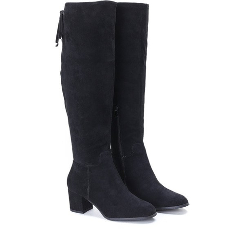 • Wyjątkowo ciepłe kozaki na słupku wykonane ze skóry ekologicznej zamszowej. W środku posiadają ocieplenie w formie futerka. Idealnie się sprawdzą na chłodniejsze dni!