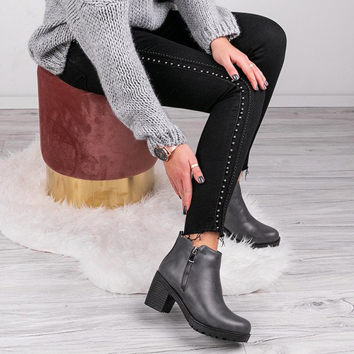 • Klasyczne botki na grubym obcasie wykonane ze skóry ekologicznej. W środku posiadają ocieplenie w formie futerka. Model zapinany na suwak po boku. Prosty fason, który pasuje do wielu codziennych stylizacji.