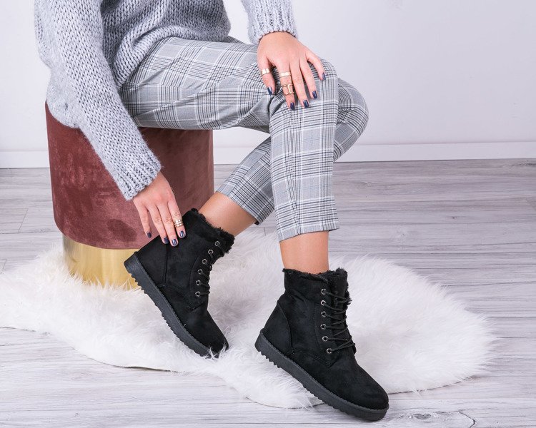Czarne, ocieplane botki na platformie Gretta - Obuwie