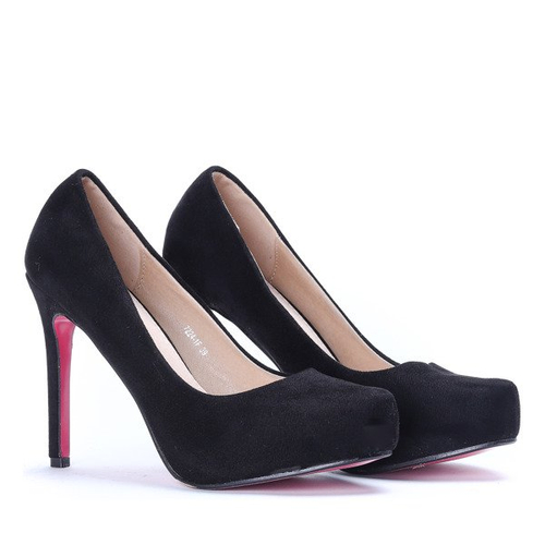 Czarne czółenka na szpilce wykonane z ekologicznego zamszu Elina-Obuwie