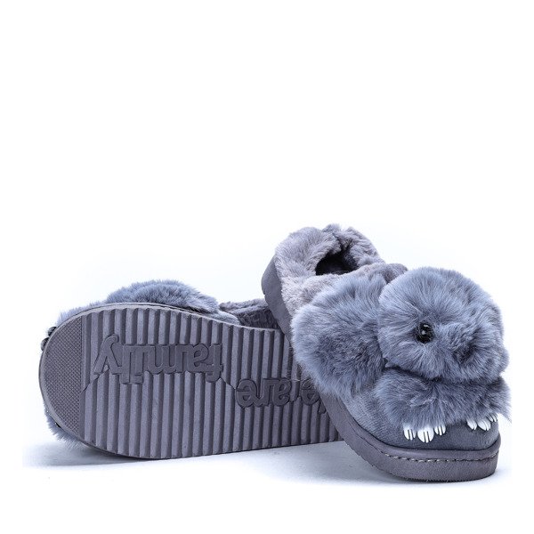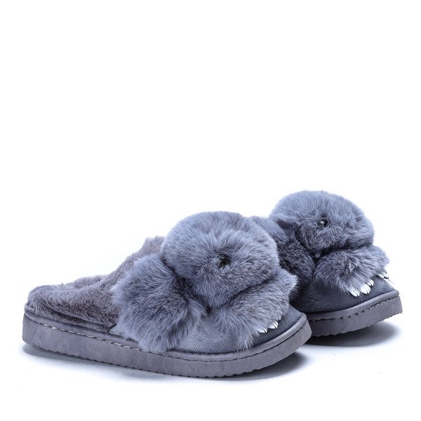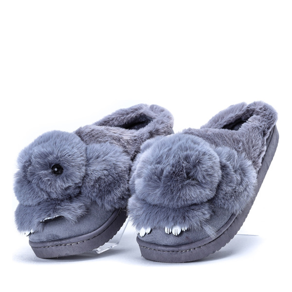- Wyjątkowo wygodne, ciepłe kapcie z imitacji futra. Przód zdobiony głową króliczka. Miękka podeszwa wykonana z gumy.