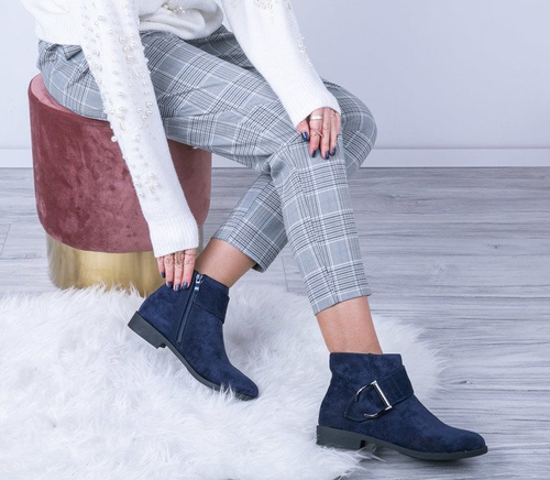 - Klasyczne, krótkie botki wykonane ze skóry ekologicznej zamszowej. Posiadają ozdobną sprzączkę po boku. Ocieplane futerkiem w środku oraz zapinane suwakiem. Idealne do każdej klasycznej stylizacji!