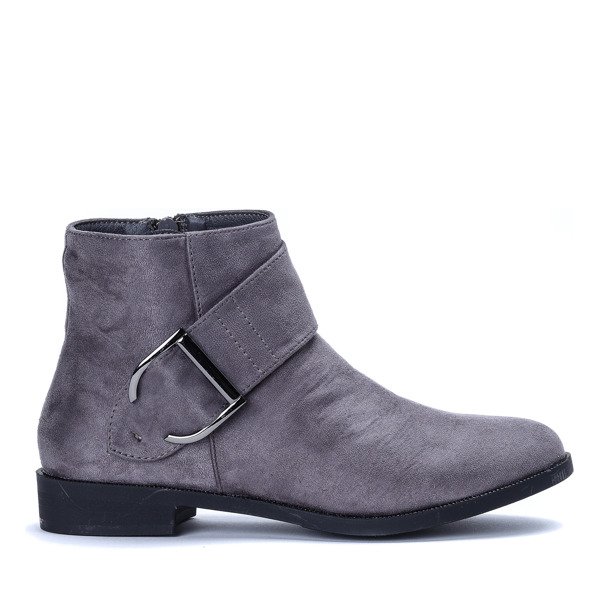 • Klasyczne, krótkie botki wykonane ze skóry ekologicznej zamszowej. Posiadają ozdobną sprzączkę po boku. Ocieplane futerkiem w środku oraz zapinane suwakiem. Idealne do każdej klasycznej stylizacji!