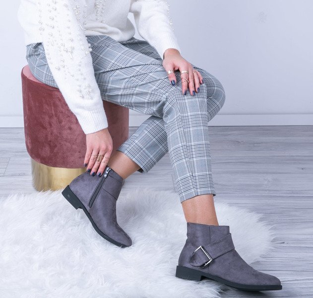 Szare sztyblety ze sprzączką Bianka- Obuwie