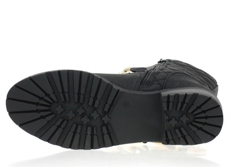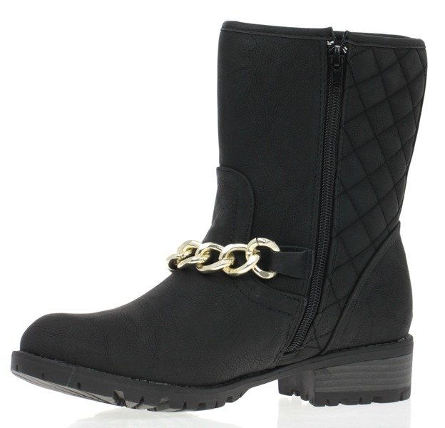 Czarne botki z ozdobnym łańcuszkiem - Obuwie