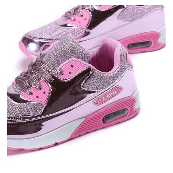 - Sznurowane buty wykonane częściowo z tkaniny pokrytej brokatem oraz skóry ekologicznej. Sportowy, modny styl. Idealne na co dzień, siłownię lub na poranny jogging. Solidnie wykonane i bardzo wygodne.
