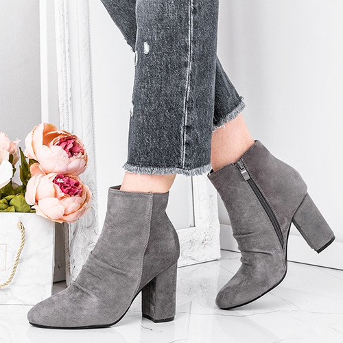 Szare botki z marszczeniem na słupku Ruby - Obuwie