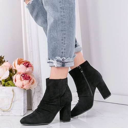 Czarne botki z marszczeniem na słupku Ruby - Obuwie
