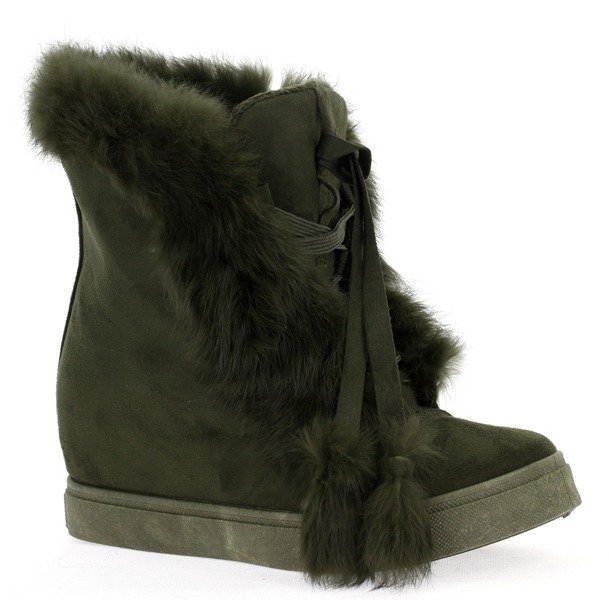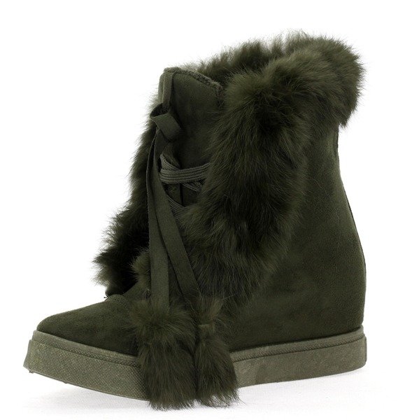 Zielone sneakersy z futerkiem Lydija - Obuwie